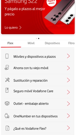Desde la página de inicio, pulsa en “Tienda online” y selecciona la sección “Flex”, donde tienes disponible un amplio catálogo de móviles nuevos con descuento.