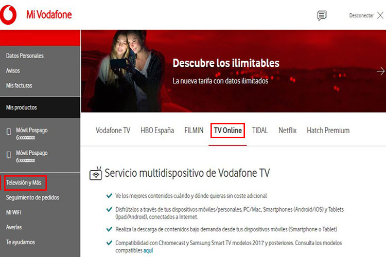Si tienes contratada Vodafone TV, tienes incluido sin coste adicional el servicio de TV Multidispositivo y puedes activarlo en Mi Vodafone: